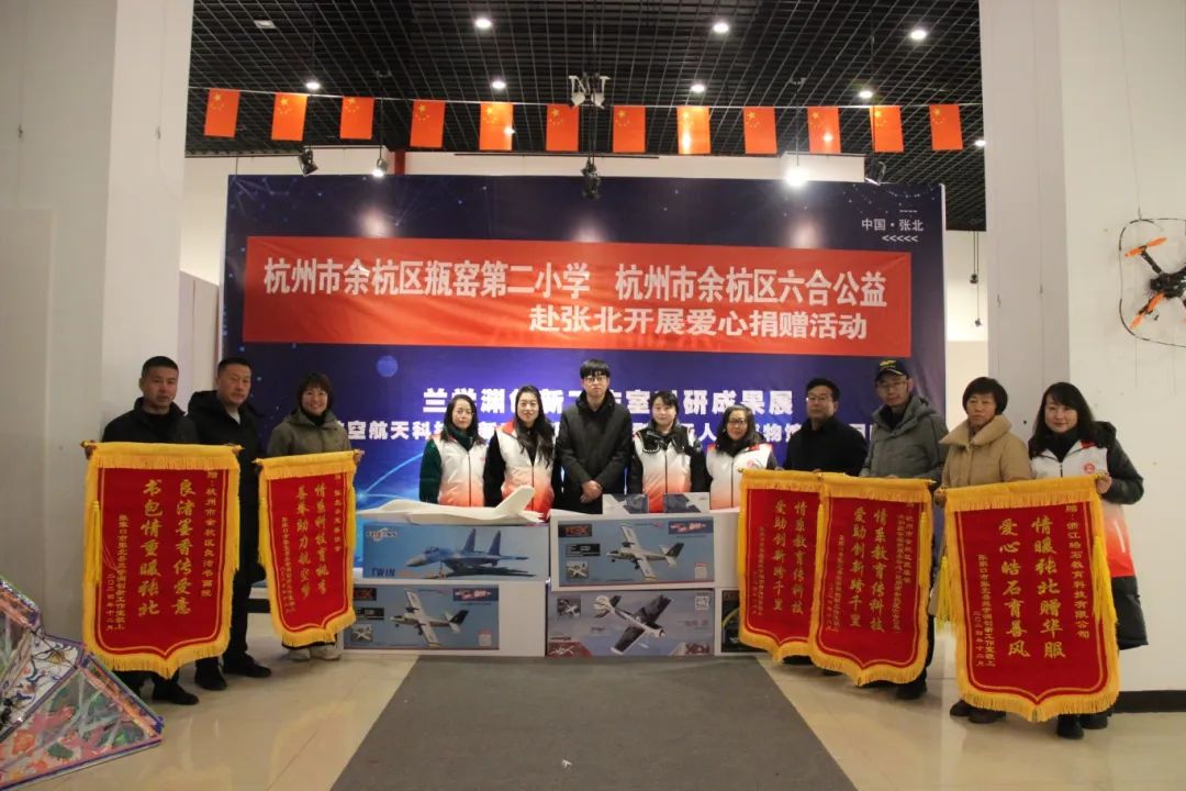 杭州市余杭區瓶窯第二小學聯合余杭區六合公益,向張北縣慈善協會捐贈了價值35000元的飛行模型器材;浙江皓石教育科技有限公司為張北縣慈善協會捐贈了170套服裝;杭州市余杭區良渚書畫院向張北縣慈善協會捐贈了27個書包。